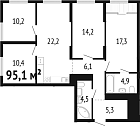 Кухня 22.2 м2 Жилая 52.1 м2 Балкон: нет