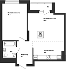 Кухня 14.4 м2 Жилая 26.6 м2 Балкон: да