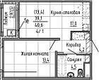 Кухня 17 м2 Жилая 13.4 м2 Балкон: да
