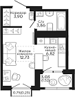 Кухня 14.82 м2 Жилая 11.38 м2 Балкон: да