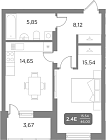 54.66 м2 24 этаж