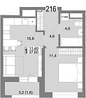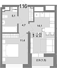 36.3 м2 13 этаж