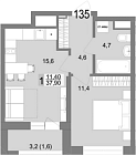 35.5 м2 11 этаж