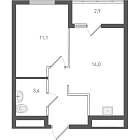 50.3 м2 16 этаж